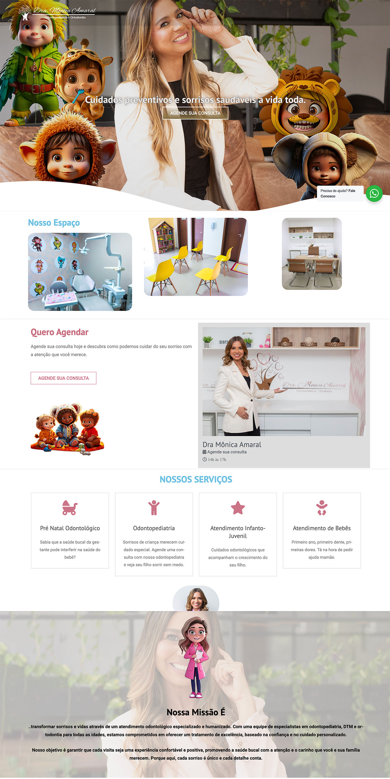 A Dra Mônica é uma odontopediatra de Ananindeua que quando abriu sua clínica nos chamou para melhorar sua presença digital. A partir daí trabalhamos em uma ideia que ela já desenvolvia e que era presente no seu consultório, que são os mascotes, desenhos de crianças vestidas de animais, como era nas campanhas da Parmalat nos Anos 1990. Nós atualizamos os mascotes para personagens tridimensionais e começamos a trabalhar seu conteúdo nas mídias sociais e na sua página.